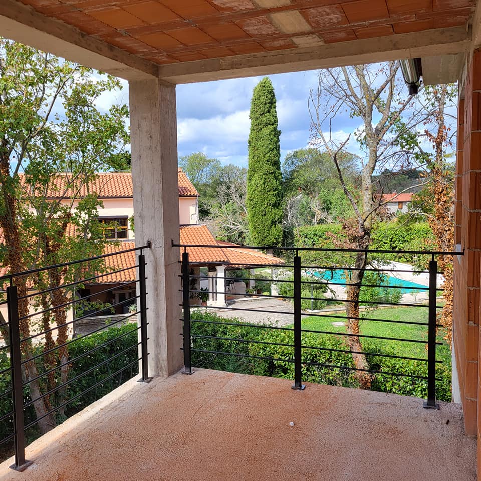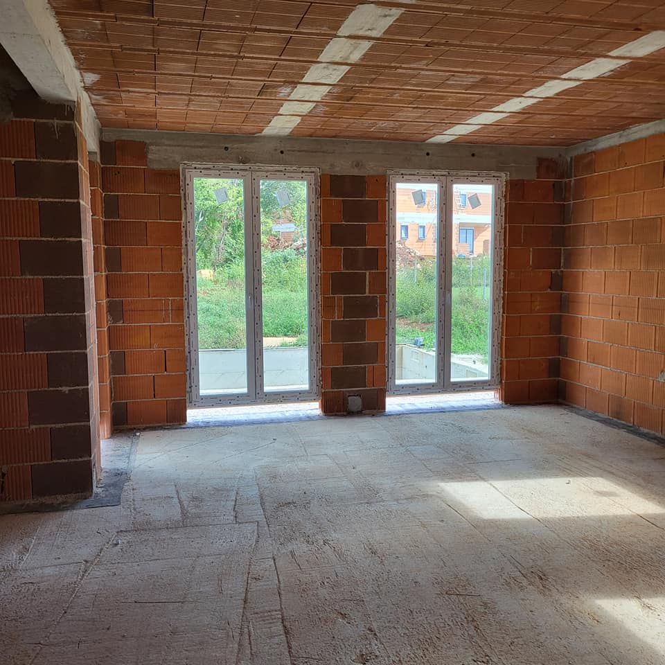 Prodaje se kuća u gradnji pod krovom i stolarijom. Udaljenost od mora je nekih 3 km. Kuća se sastoji od prizemlja u kojoj se nalazi dnevni boravak sa kuhinjom spavaćom sobom i kupaonicom, na katu se nalaze tri spavaće sobe svaka sa svojom kupaonicom te izlazom na lođu. Na okućnici se nalazi bazen. Mogućnost kupnje još jednog dodavno terena.