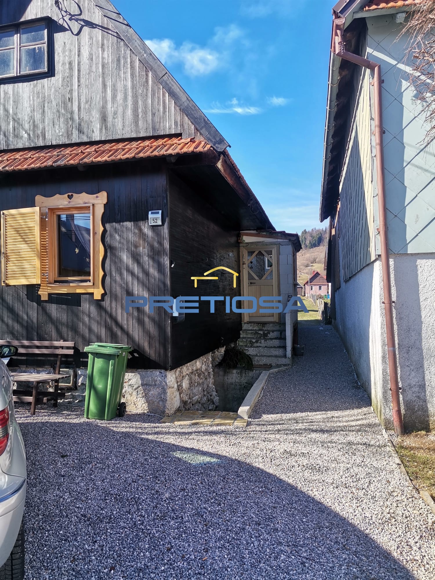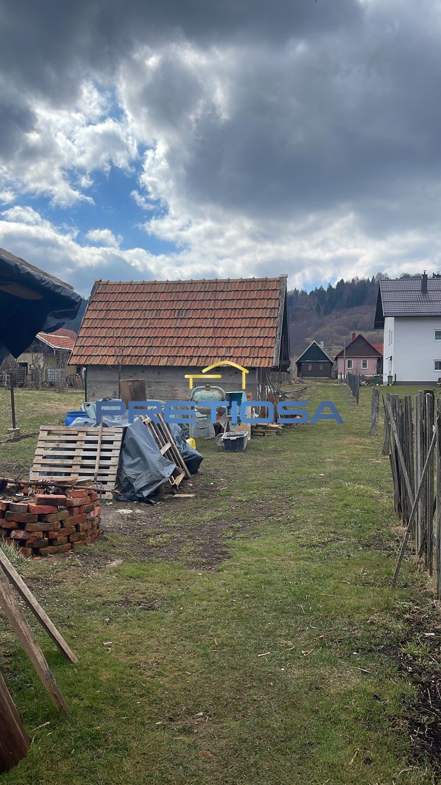Detached house for sale in Mrkoplje, 200 m from the center as well as from the Čelimbaša ski resort. The house consists of a tavern of some 30 m2, a ground floor of 105 m2 and an attic. On the ground floor, there is a 70 m2 apartment, which consists of a kitchen with a dining room, a living room, a bedroom, a bathroom, and an auxiliary room. The high attic of some 105 m2 is unfurnished, and the new owner is allowed to furnish it according to his wishes and needs. The house has wood-fired central heating. The yard covers 700 m2 and has a strip shape. The property is ideal for tourism, but also for creating your own little paradise.