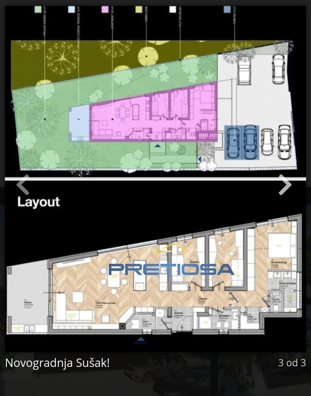 We are selling an exclusive, top-quality furnished apartment in an attractive location, in the heart of the eastern part of Rijeka, in Sušak, a location that provides access to many amenities within a very short distance. The microlocation of the building offers peace, comfort and convenience. The apartment is 3 bedrooms + living room, and consists of a living space of 104 m2, a terrace of 16 m2 and a garden of 260 m2 in the property. It is located on the ground floor of a new building consisting of a total of 3 residential units.