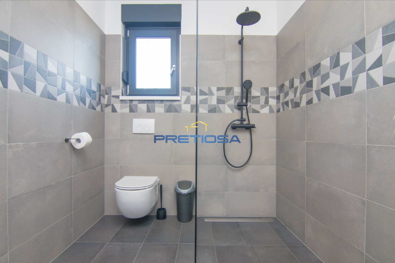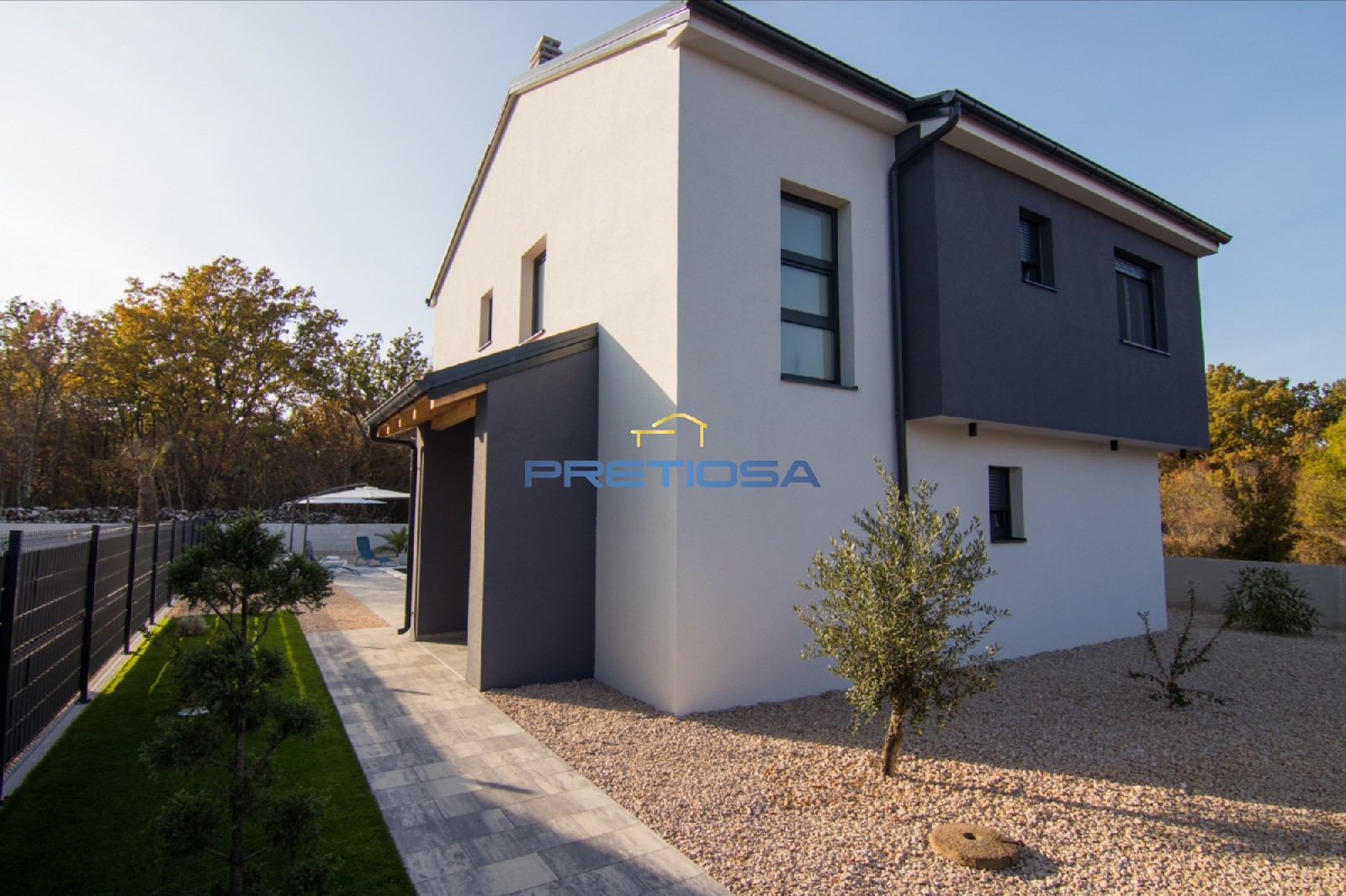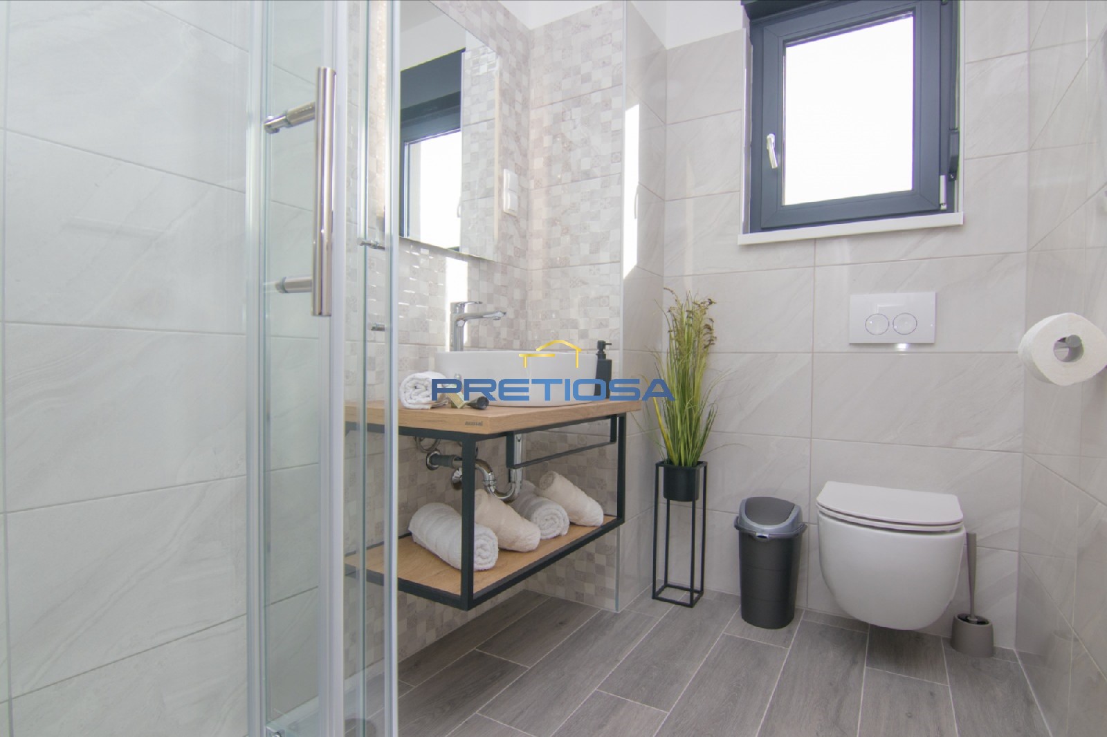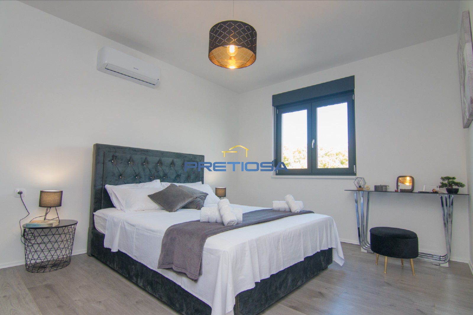 A detached house on the island of Krk of 180 m2 is for sale, located on a 600 m2 landscaped garden. The same is in the function of tourism and categorized with 5 stars. The house consists of a kitchen with a dining room, a living room, a toilet and a bedroom with a bathroom on the ground floor, and on the first floor 3 bedrooms, each with its own bathroom. There is a 37 m2 swimming pool in the garden. The house is sold furnished and decorated. It is about 5 km from the sea. All papers are in order.
