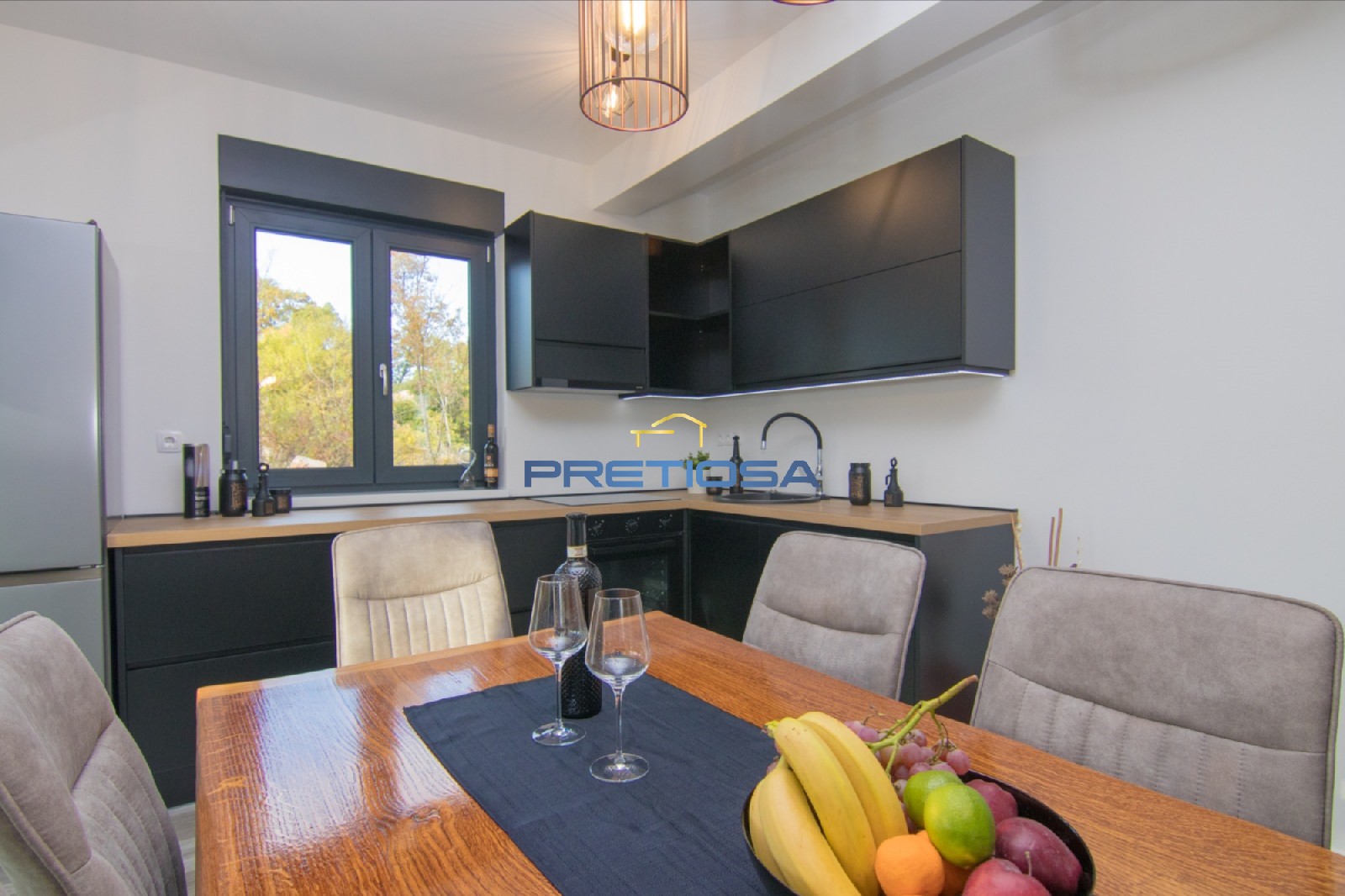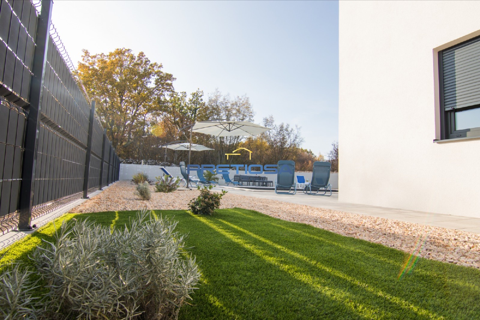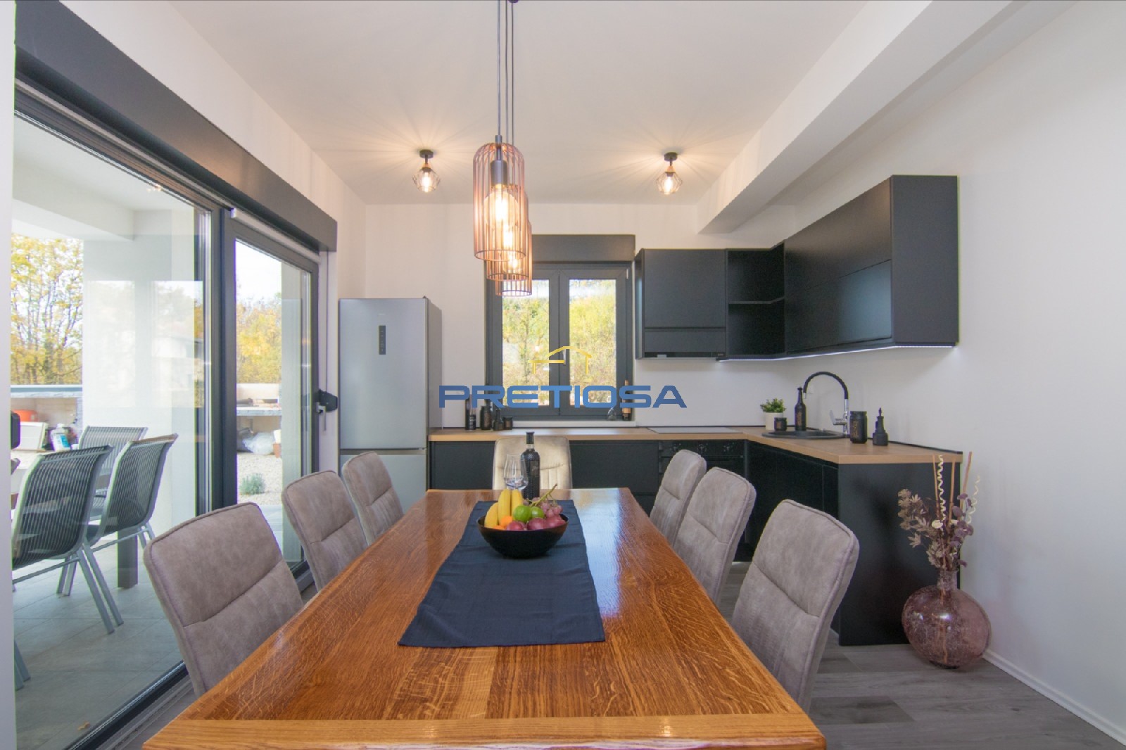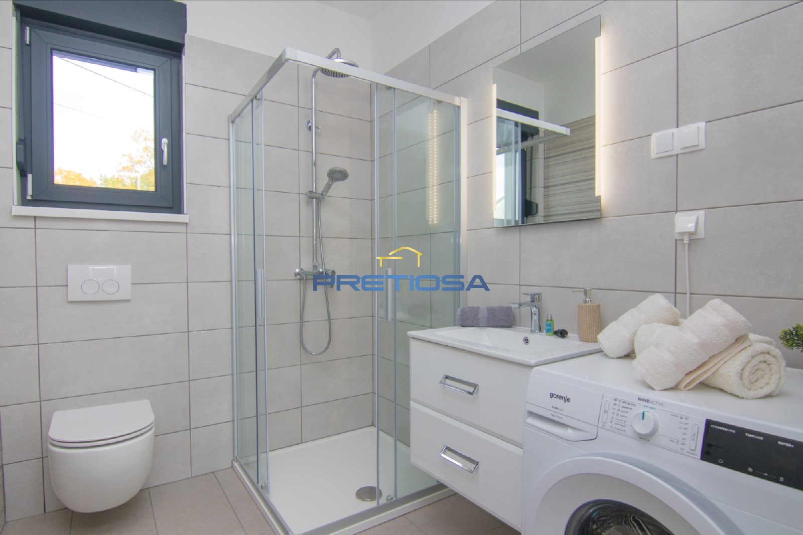 A detached house on the island of Krk of 180 m2 is for sale, located on a 600 m2 landscaped garden. The same is in the function of tourism and categorized with 5 stars. The house consists of a kitchen with a dining room, a living room, a toilet and a bedroom with a bathroom on the ground floor, and on the first floor 3 bedrooms, each with its own bathroom. There is a 37 m2 swimming pool in the garden. The house is sold furnished and decorated. It is about 5 km from the sea. All papers are in order.