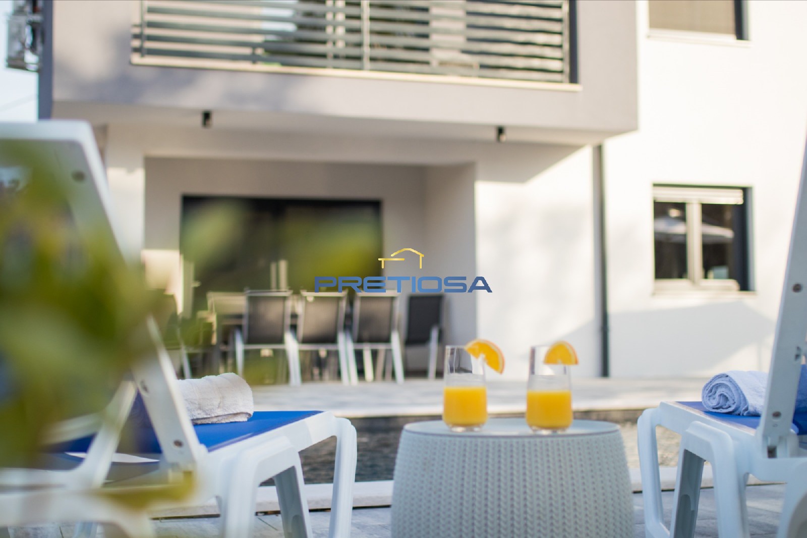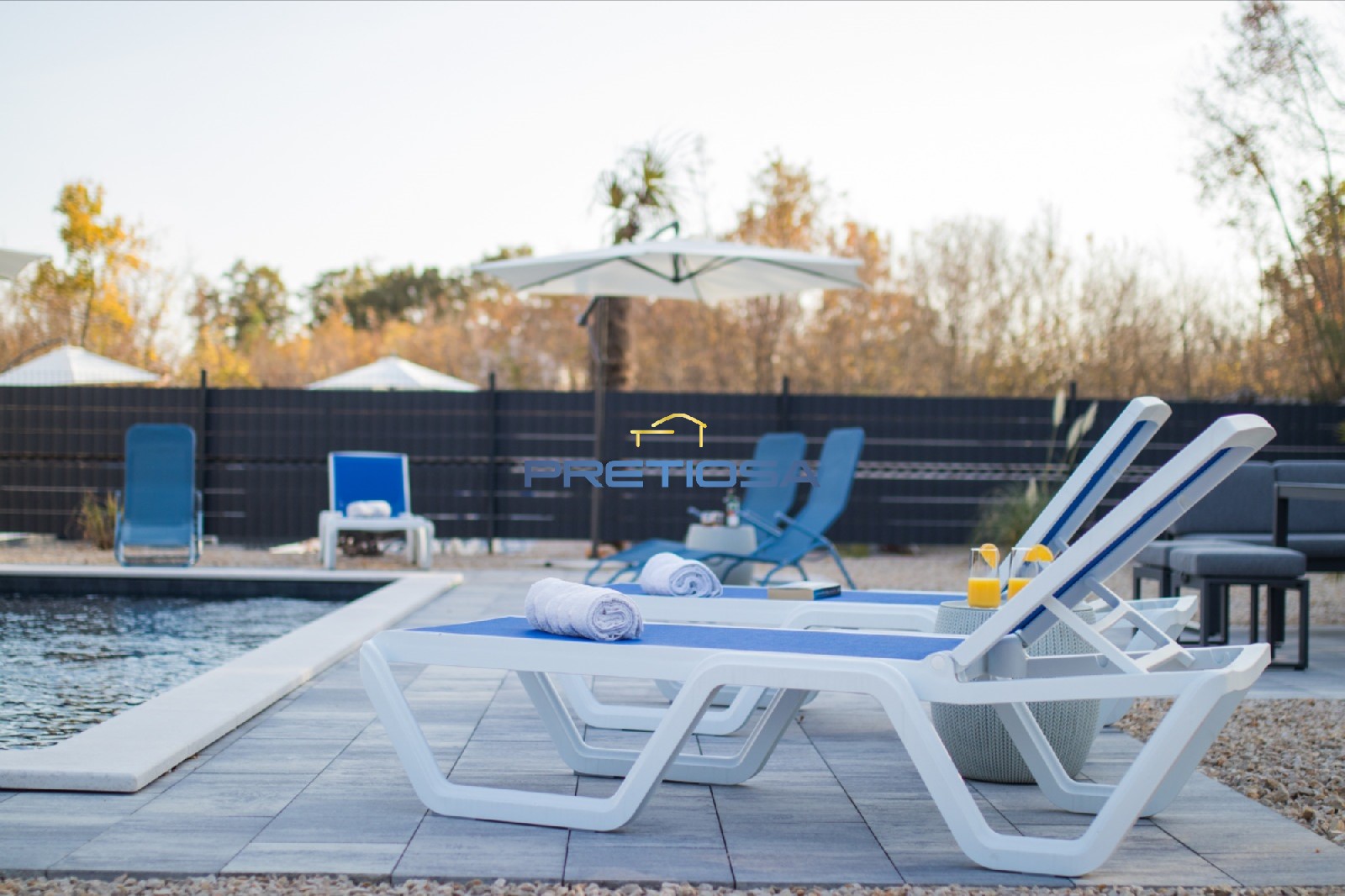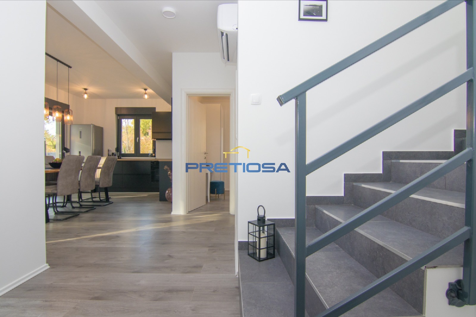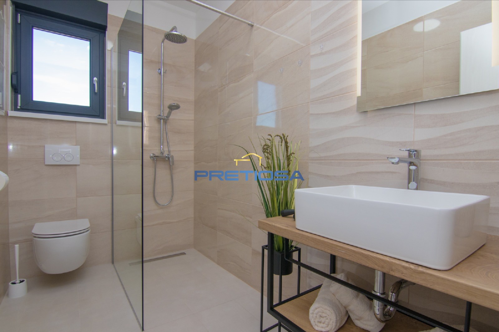 A detached house on the island of Krk of 180 m2 is for sale, located on a 600 m2 landscaped garden. The same is in the function of tourism and categorized with 5 stars. The house consists of a kitchen with a dining room, a living room, a toilet and a bedroom with a bathroom on the ground floor, and on the first floor 3 bedrooms, each with its own bathroom. There is a 37 m2 swimming pool in the garden. The house is sold furnished and decorated. It is about 5 km from the sea. All papers are in order.