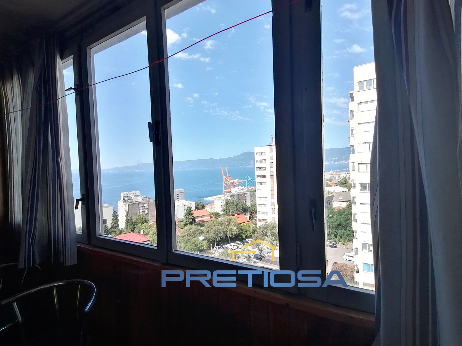 Prodaje se stan na Krimeji u urednom i uređenom neboderu na 7 katu velicine 51 m2. Stan je orjentacije SZ. Sastoji se od kuhinje sa blagavaonom,velikog dnevnog boravka, kupaone sa wc om spavaće sobe ,hodnika ,balkona I drvarnice. Sa balkona se pruža pogled na more i Riječka luku. Grijanje je na drva ,može klima i gradski plin. Režije su male. Stan se nalazi na odličnoj lokaciji u blizini svih potrebnih sadržaja.