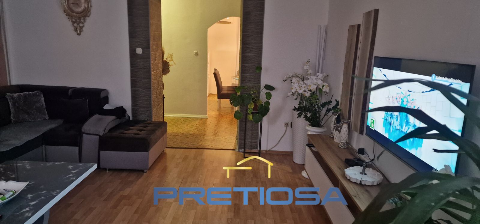 Prodajemo stan na Riječkoj tržnici od 90 m2 na 1 katu koji se sastoji od kuhinje sa blagavaonom ,dnevnog boravka,kupaone sa wc om I 2 spavaće sobe. Stan je 90 m2 I nalazi se na 1 katu.