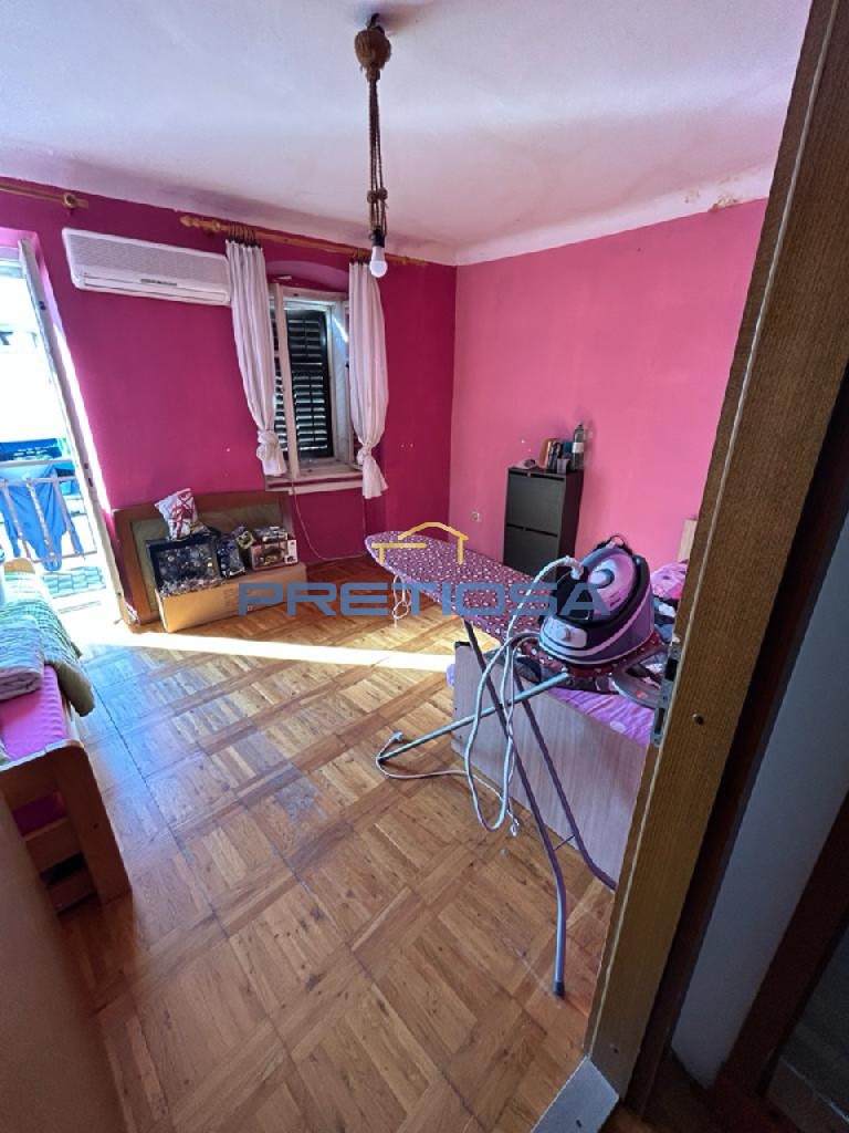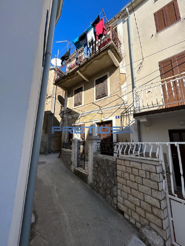 An interesting property for sale in Omišlja on the island of Krk, which extends over 3 floors, ground floor, first and second floor connected by internal stairs. The ground floor consists of a hallway, a living room with a kitchen and a dining room. The first floor consists of a bedroom and a bathroom, and the second floor consists of a bedroom and a wardrobe. Under the stairs there is a practical pantry for storing things that are not in daily use. The property is some 300 meters away from the sea as the crow flies. Buying this property is a great investment because it can be used as a house to live in, but also for rent, given that it is located near all essential amenities.